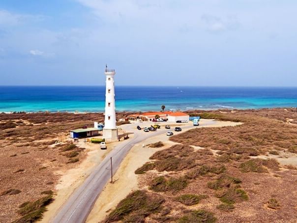 A beloved landmark, the 1910 lighthouse is perched high on an expanse overlooking Aruba’s west coast and offers stunning 360-degree views of the island.