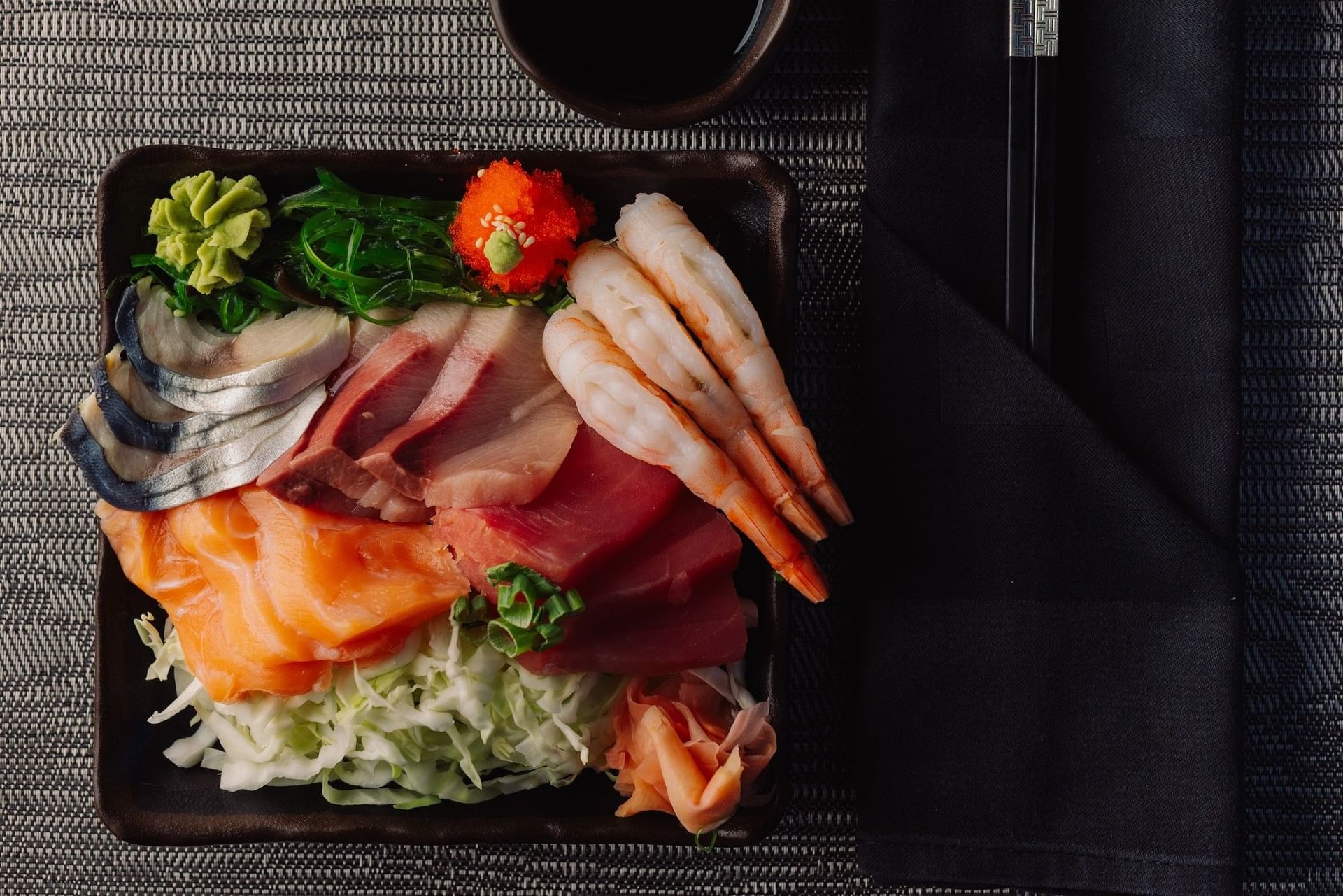 Salmon, tuna, grouper, scallions, cucumber & wakame